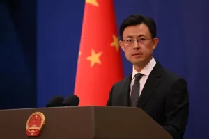 El portavoz del Ministerio de Exteriores de China, Guo Jiakun, durante una rueda de prensa en la capital, Pekín (archivo)